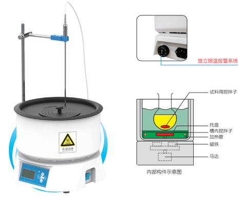 ● 可以用作水浴或油浴,浴槽內(nèi)設(shè)強(qiáng)磁力攪拌。