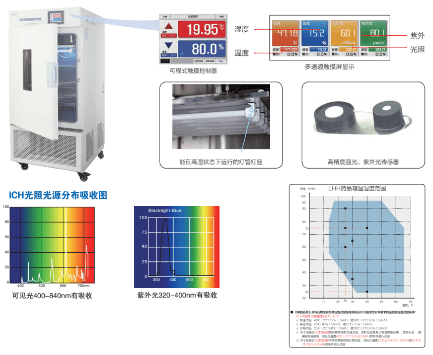 控制,是制藥和化妝品企業(yè)進(jìn)行GMP認(rèn)證的必備設(shè)備。符合ICH指導(dǎo)原則中光穩(wěn)定性測(cè)試條件。